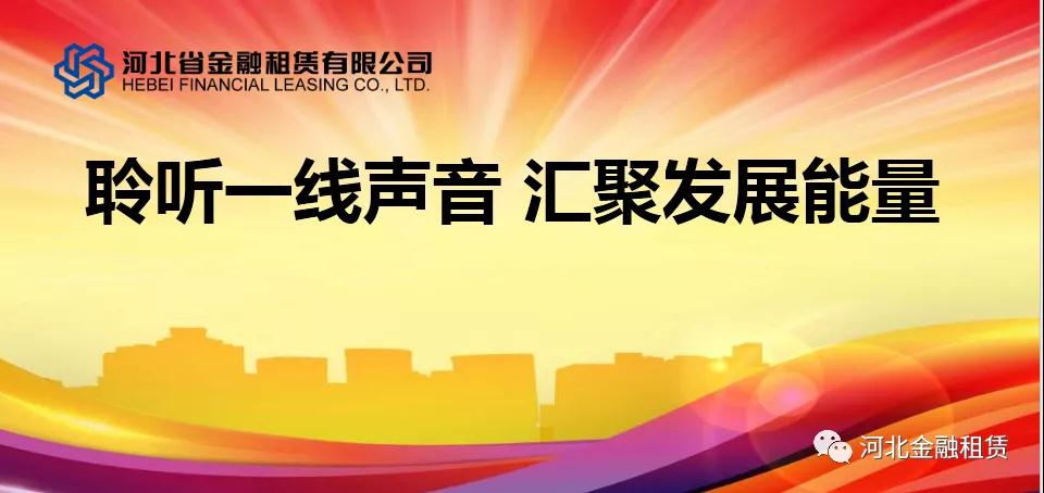日前,河北省金融租賃有限公司(以下簡稱“河北金租”或“公司”)在武漢舉行員工座談會,公司董事長徐敏俊、副總裁李永德等與醫(yī)療健康、工程裝備等業(yè)務(wù)團(tuán)隊(duì)負(fù)責(zé)人和一線業(yè)務(wù)經(jīng)理共同座談,在持續(xù)三個多小時的時間里,業(yè)務(wù)經(jīng)理們踴躍發(fā)聲,實(shí)事求是提建議,獻(xiàn)計(jì)獻(xiàn)策謀發(fā)展,互動交流解疑惑,在面對面的互動中搭建了心與心交流的橋梁。