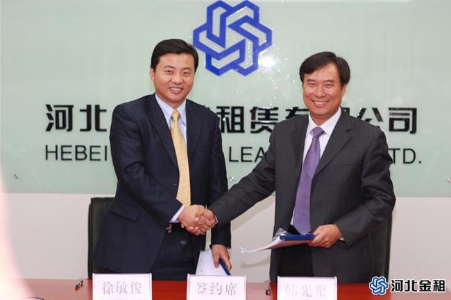 2012年4月17日,我公司與中信銀行石家莊分行在石家莊市河北建投大廈舉行了全面合作簽約儀式,公司總裁徐敏俊與中信銀行石家莊分行行長韓光聚代表雙方簽署了《全面合作協議書》,為充分發揮雙方優勢,建立了長期、穩定、良好的合作關系。雙方就銀租合作需求進行深入探討,進一步達成“地域性合作”需求,立足河北,共同致力于為客戶提供專業化的銀行與租賃的綜合金融服務,實現強強聯合、優勢互補和效益共贏。
